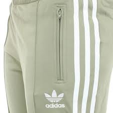 Dámska súprava zn. Adidas z kolekcie Originals zelenej farby. Mikina má zapínanie na zips, vpredu na ľavej strane a vzdadu logo Adidas originals, po bokoch biele pásiky a vrecká na zips. Tepláky sú tiež zelenej farby na ľavej strane logo Adidas Originals, po bokoch biele pásiky a zapínanie na zips na vreckách aj na spodku.